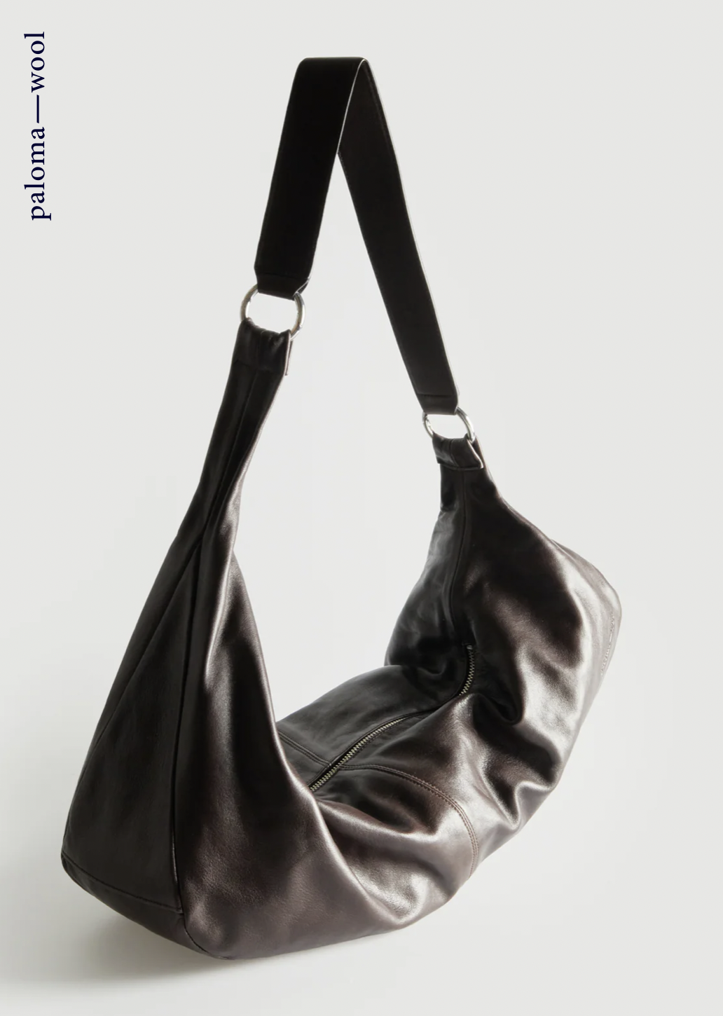 Various handle options: flat and long for crossbody wear or without the extra flat handle attached through the rings for shoulder wear.