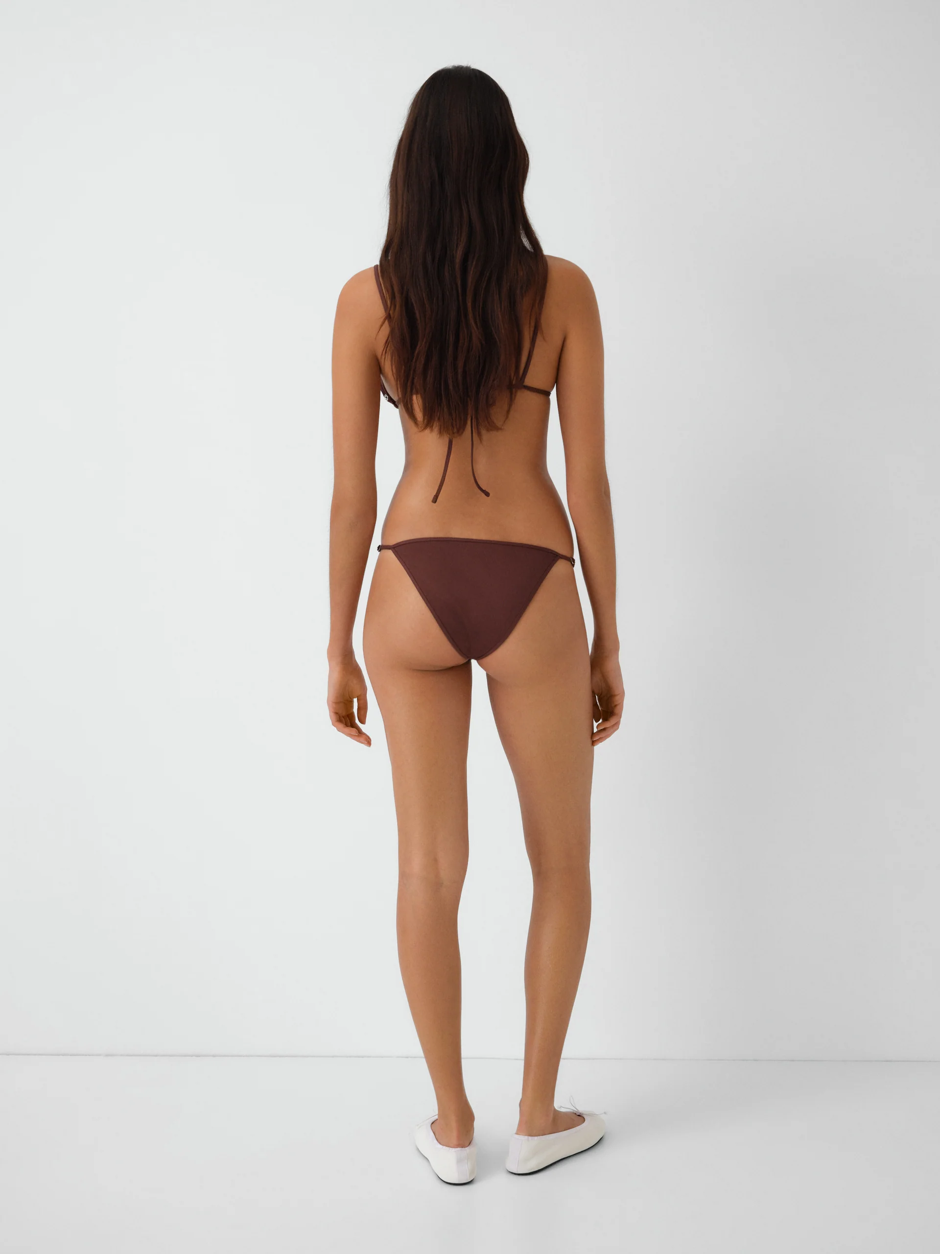 Brown bikini bottom with silver-tone eyelets.