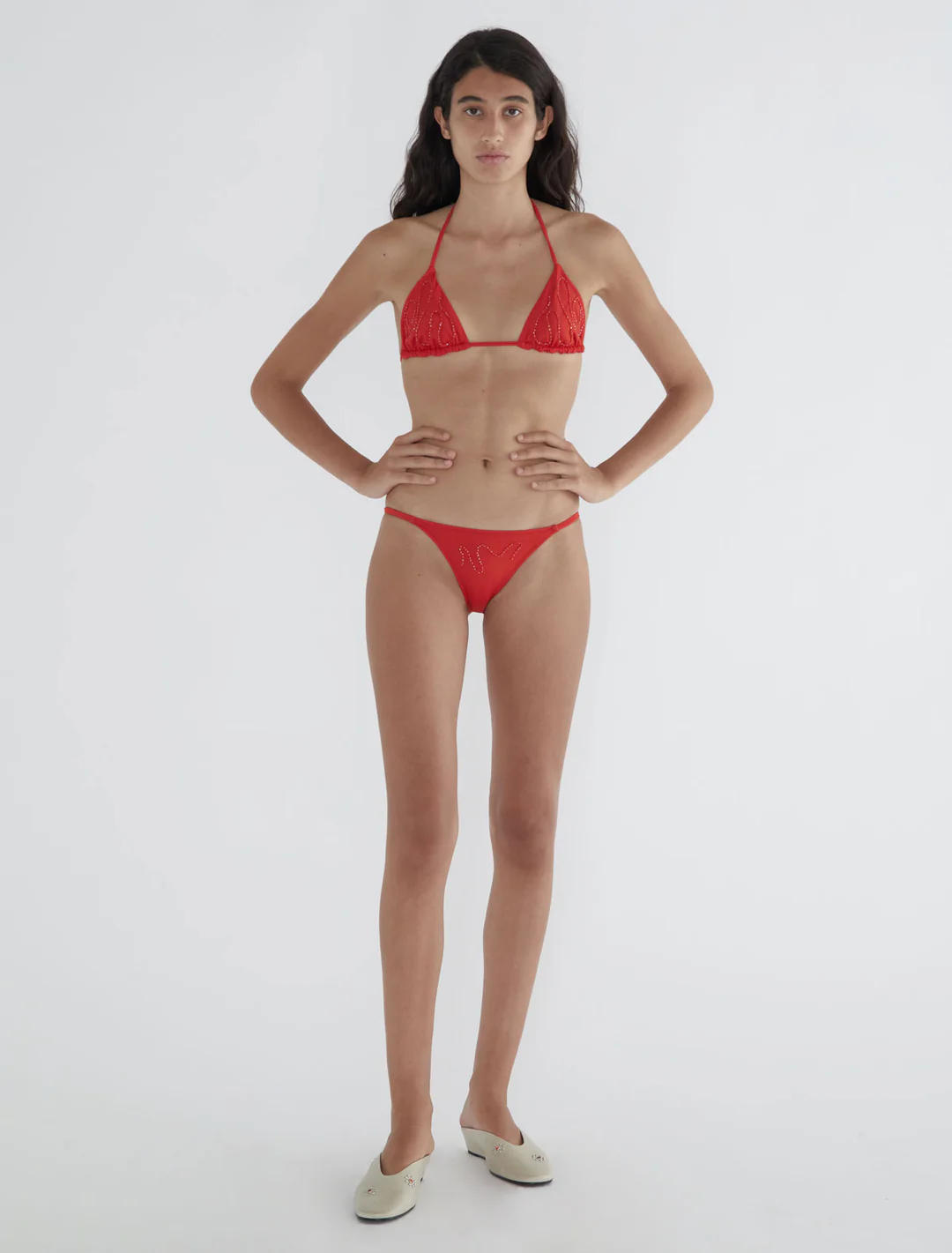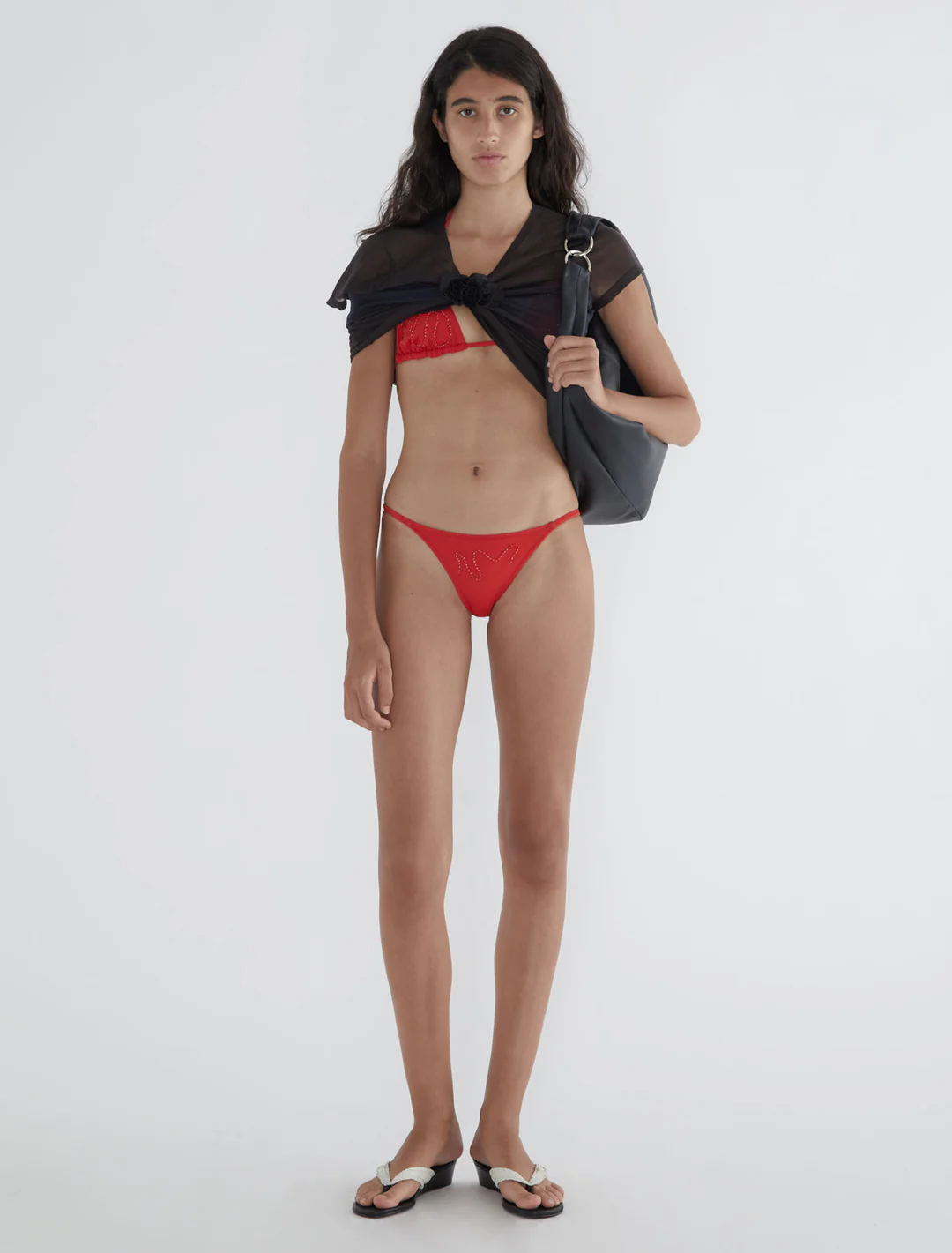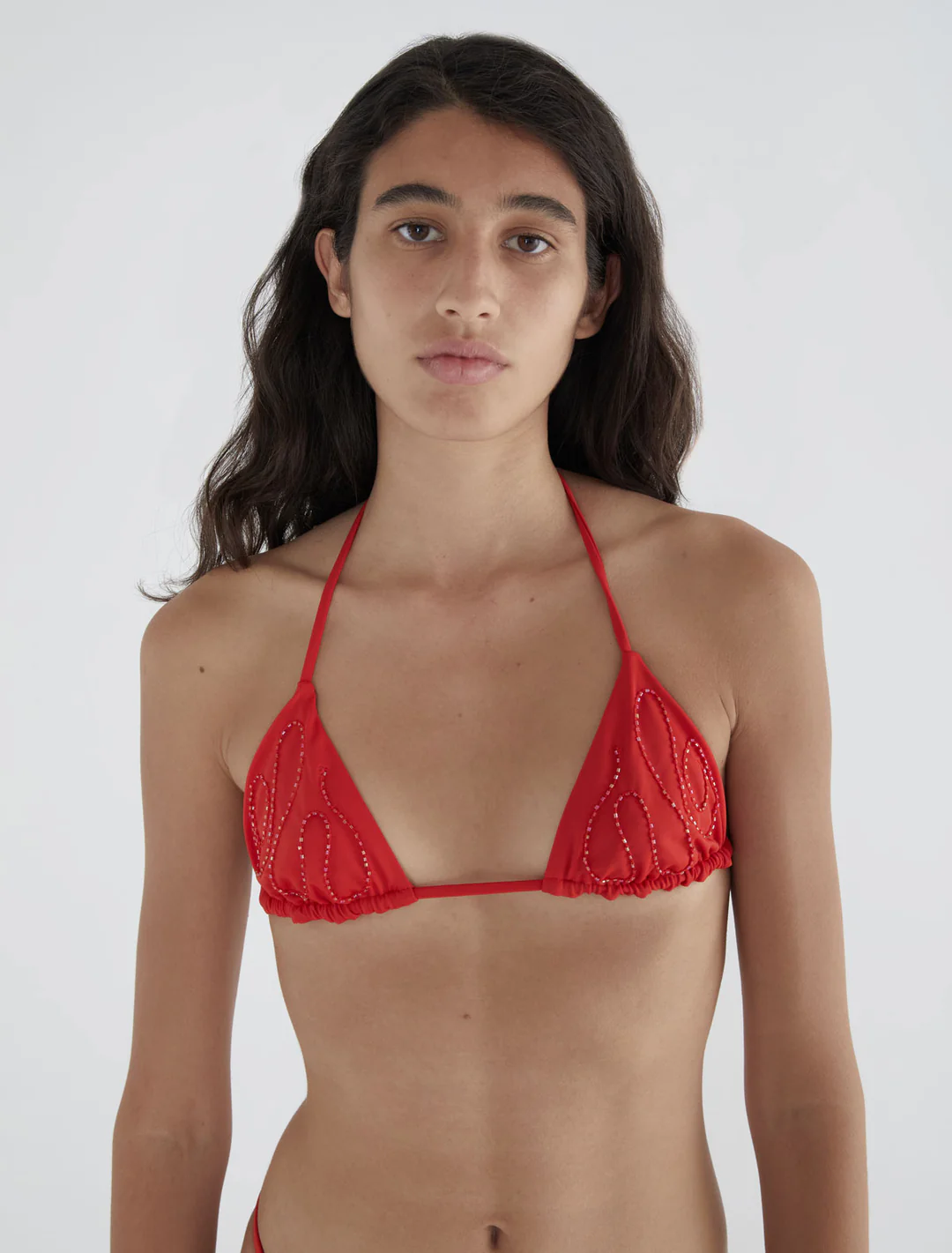 Red bikini Top with embroidery.